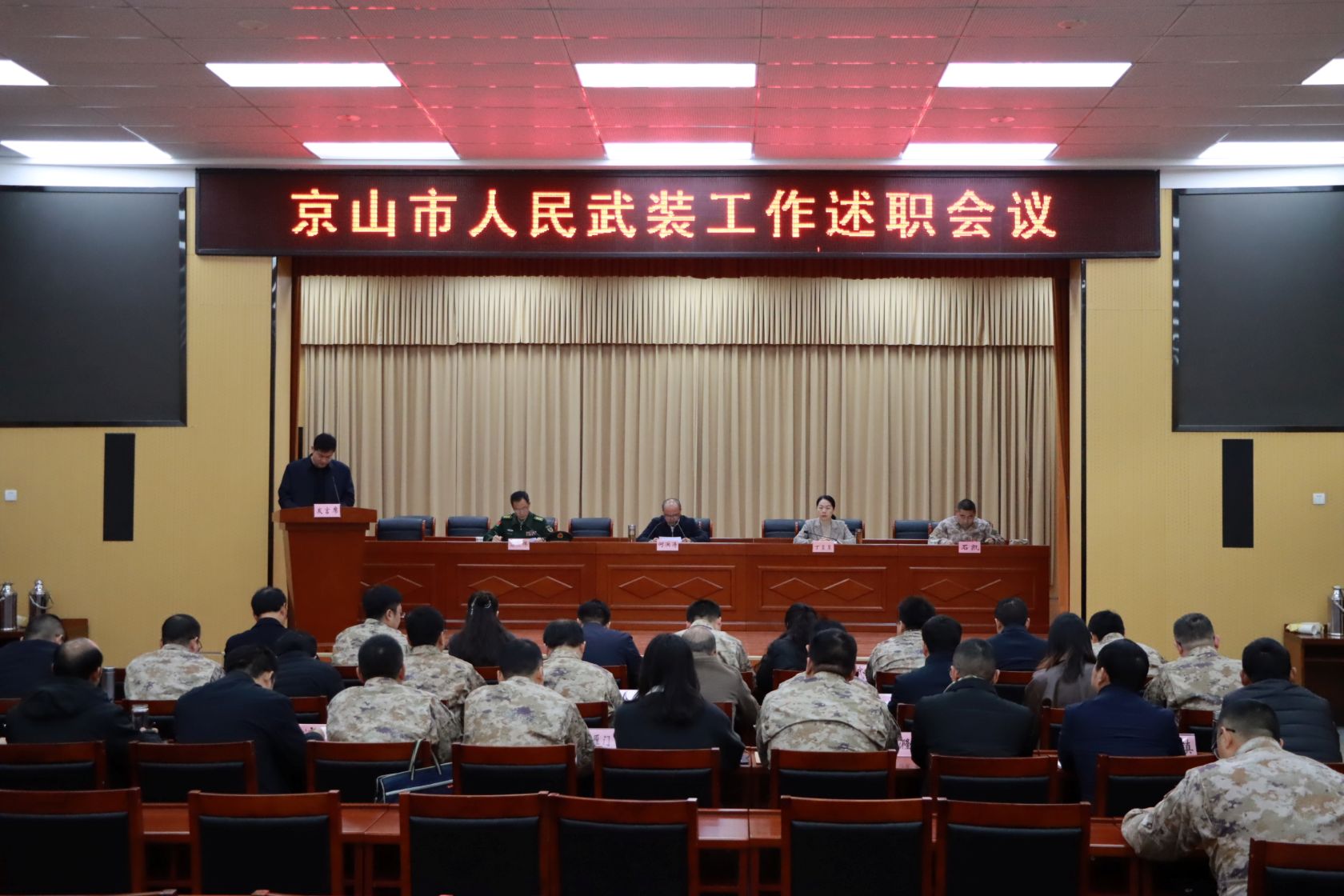 3月12日,京山市人民武裝工作述職會(huì)議在市政府小禮堂召開(kāi)。市委書記、市人武部黨委第一書記何洪濤,市委常委、常務(wù)副市長(zhǎng)丁呈呈參加會(huì)議。