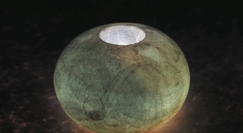 這塊石頭會發(fā)出碧綠溫潤的光澤
